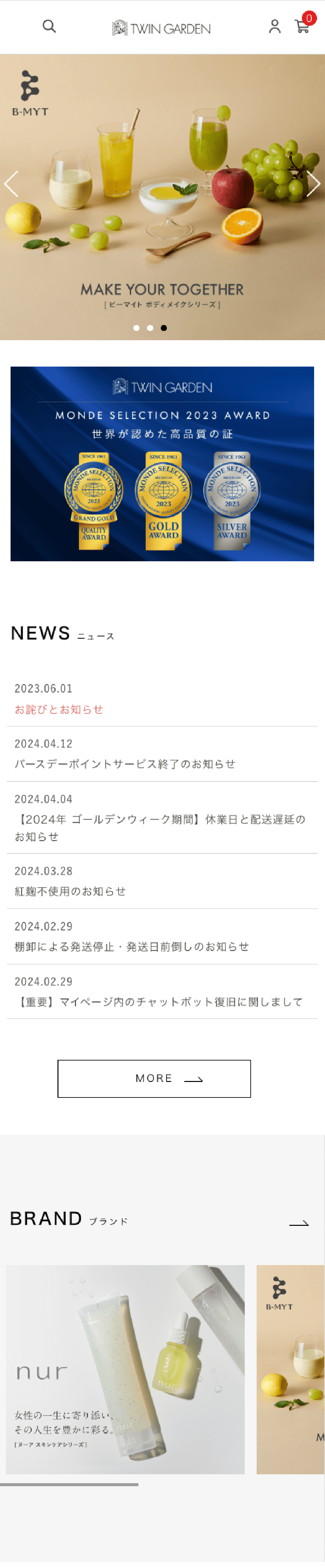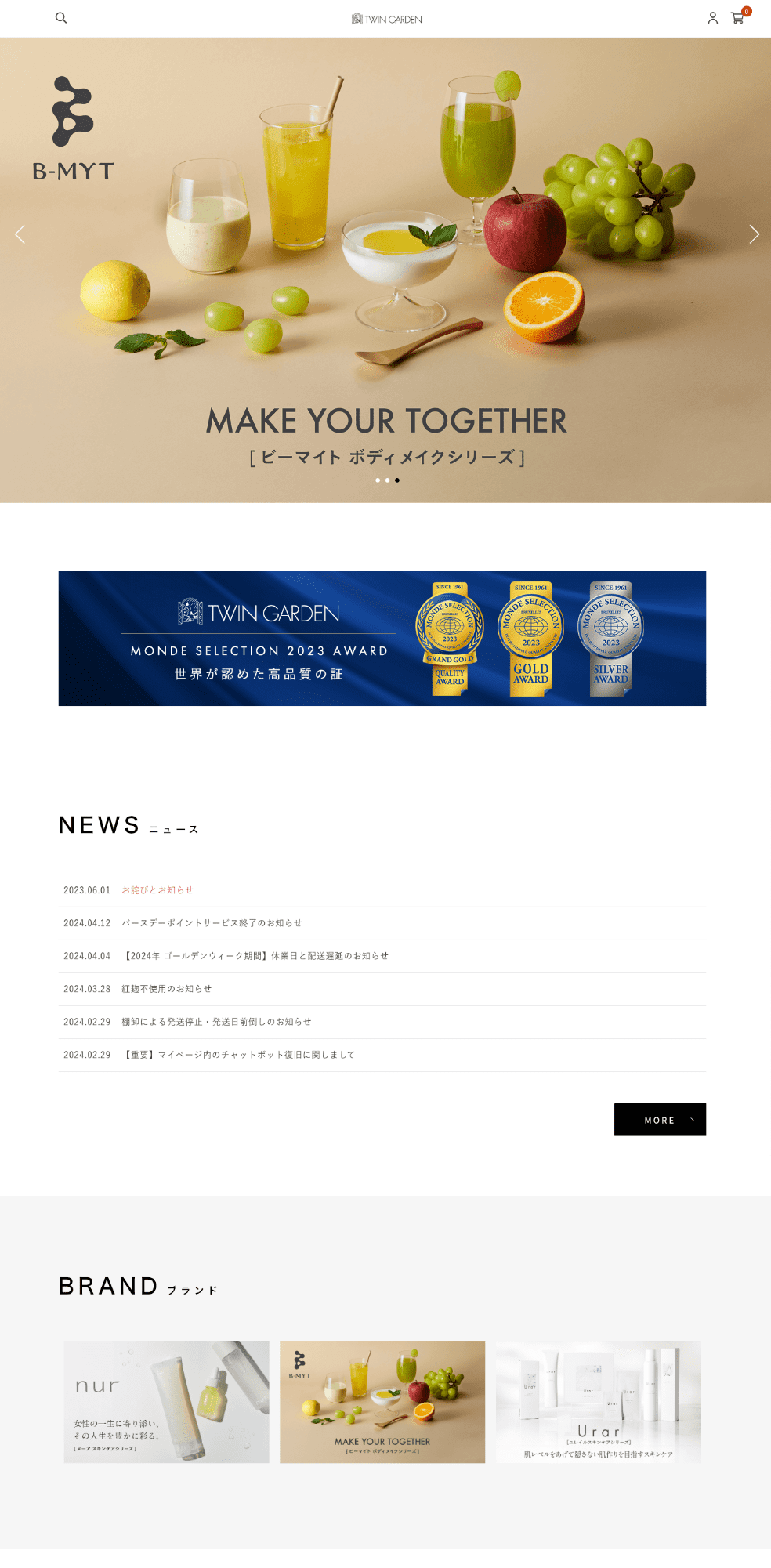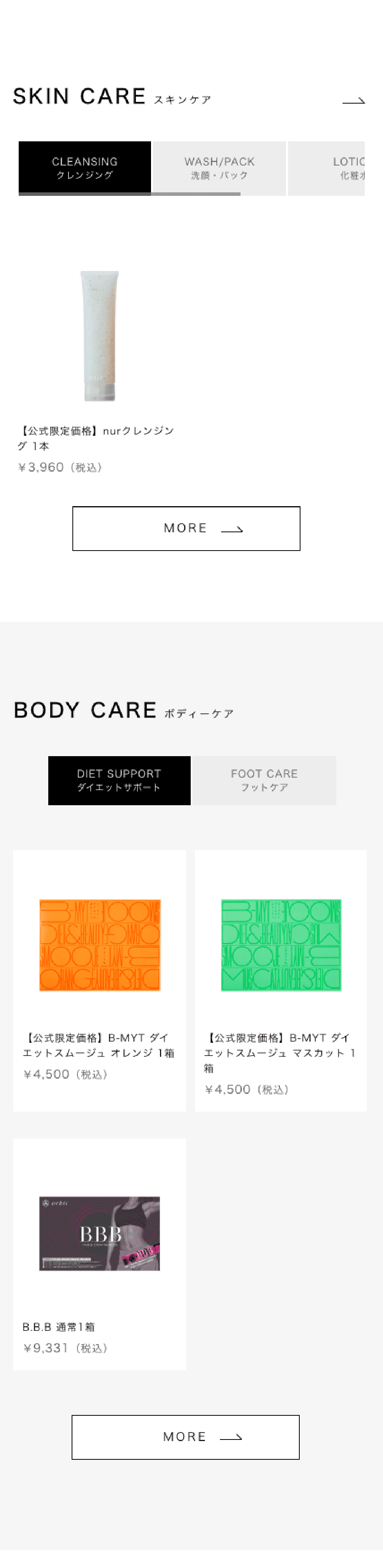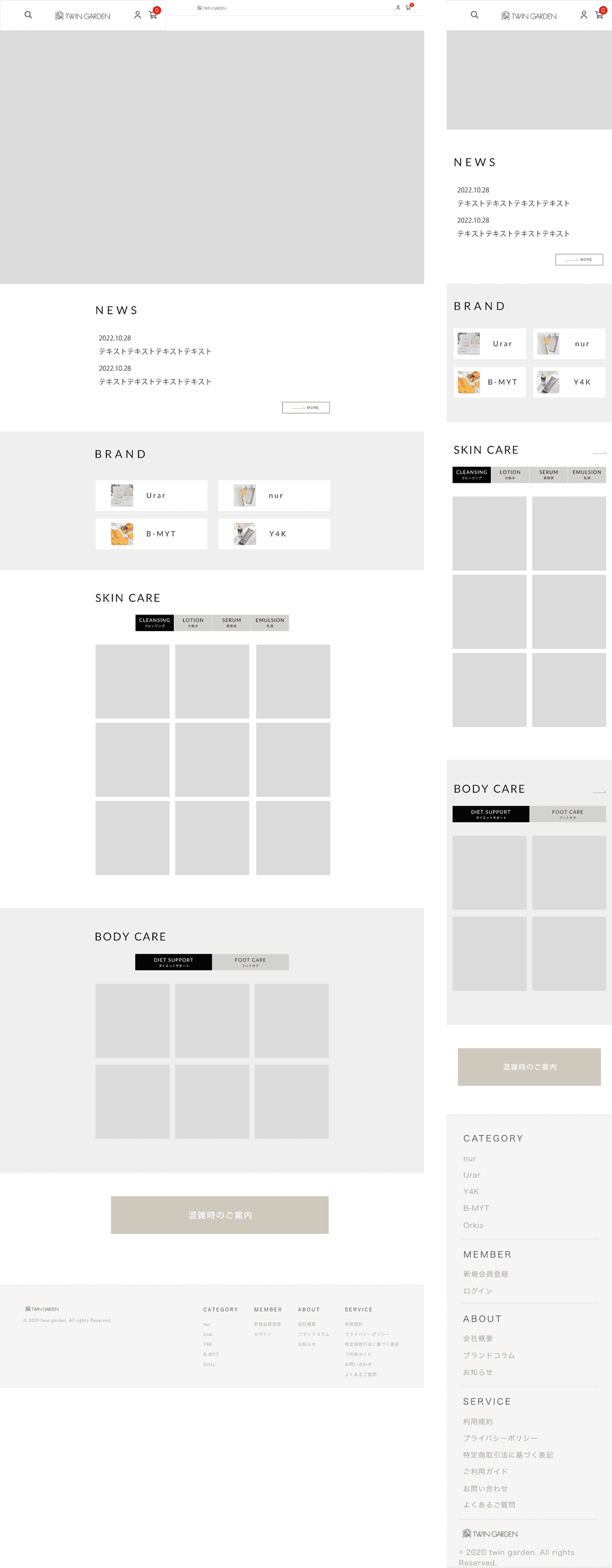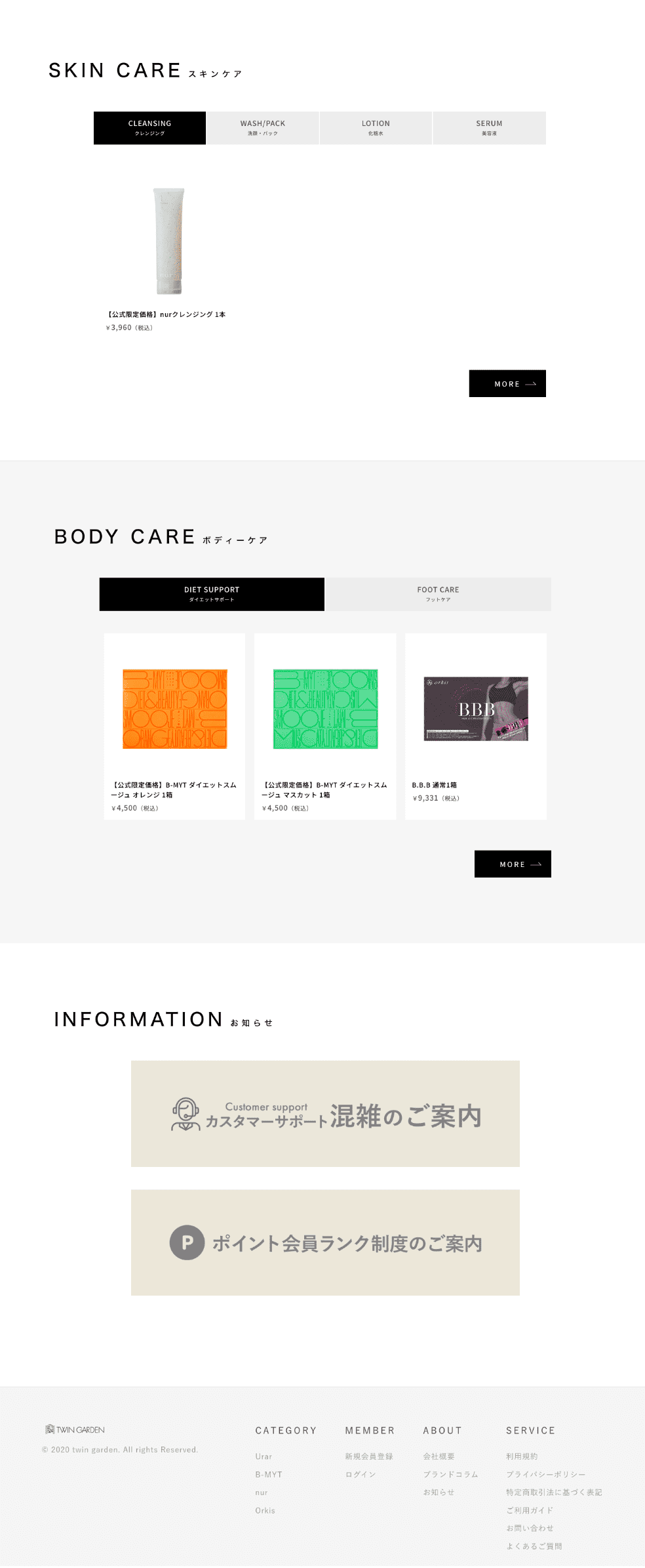 シンプルなデザインでリニューアル。ユーザーに分かりやすいレイアウトで導線がシンプルになるよう考案。商品点数が増えた場合も考慮し、縦に長くならないようプロダクトコンテンツをカテゴリ別で展開。